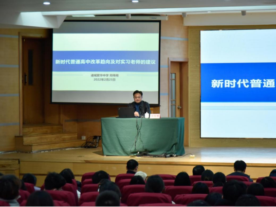 为帮助物理学专业师范生熟悉和了解中学办学情况,增强对中学物理教育事业的适应性和从事教育工作的光荣感与责任感,2月25日下午,学院邀请诸城繁华中学党委书记、校长郑伟明在孔子会堂作了题为《新时代普通高中改革趋向及对实习老师的建议》的报告。2019级物理学专业全体实习生、部分研究生、实习指导教师参加报告会。报告会由学院副院长张英杰主持。