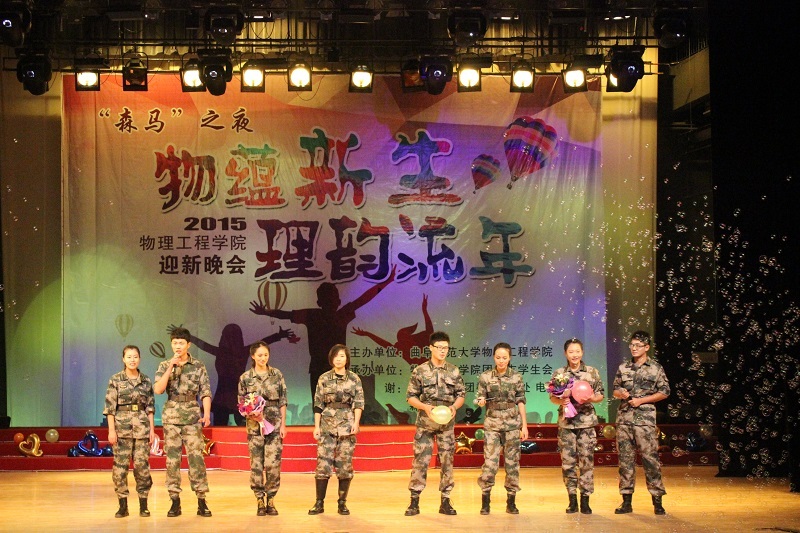 老师和同学们一年来取得的成绩的同时,也表达了对2015级新同学的真挚祝福与期望。晚会节目精彩纷呈,歌曲、小品、相声、舞蹈、创意走秀、乐队表演等一一呈现在观众眼前。歌曲串烧《青春之路》向大家诉说青春的点滴感动;一首《Loser》带动了全场气氛,燃起了同学们的斗志,青春不怕失败;小品《男生宿舍那些事》以宿舍为题材,从身边小事出发,令人开怀大笑又不失温馨感动,引发台下观众共鸣。中场互动环节,工作人员为同学们准备了饺子;大家积极参与微信互动,现场气氛活跃。王梅老师作为代表发言,对同学们表示祝福。亲切的话语,热乎的饺子,让离家在外的学子倍感温暖。而后2015级军训教官深情演唱《至少还有你》,让同学们重拾军训那段充满汗水与收获的时光。最后,晚会在掌声与乐曲旋律中圆满结束。