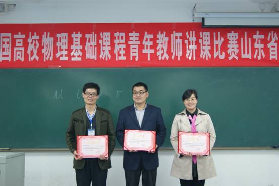 为进一步激发和鼓励青年教师投身物理基础课程教学,提升教学质量,推动教学改革和经验交流,首届全国高等学校“高等教育杯”物理基础课程青年教师讲课比赛山东省初赛于2014年4月26日在山东科技大学青岛校区成功举办,来自全省七所院校的青年教师参加了此次比赛,经过激烈的角逐,NBA直播8 刘中强老师荣获一等奖。
