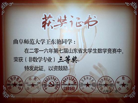 第七届山东省大学生数学竞赛证书