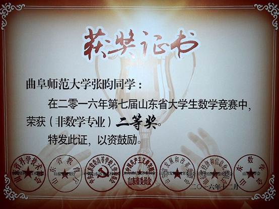 曲阜师范大学第二届大学生实验技能大赛证书
