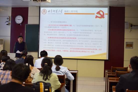 开班典礼结束后,由学院党委副书记孙金杰作“学党史党章,做合格党员”首场报告。