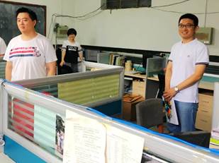 研究生辅导员丰艳婷、教务员韩士轩老师到物理楼各研究生办公室,详细了解同学们的学习和生活情况。两位老师与同学们亲切交谈,倾听同学们的建议,详细记录同学们的生活需求。并鼓励同学们着力做好课题研究工作,会和学院一道尽力解决同学们遇到的各种困难,保证所有在读研究生都有明亮、舒适、冬暖夏凉的工作环境。在走访中,韩老师详细记录了部分办公室空调老化、座椅破损、橱柜短缺、办公室水电设施故障等情况。对此,学院下一步将重点进行替换和维修。