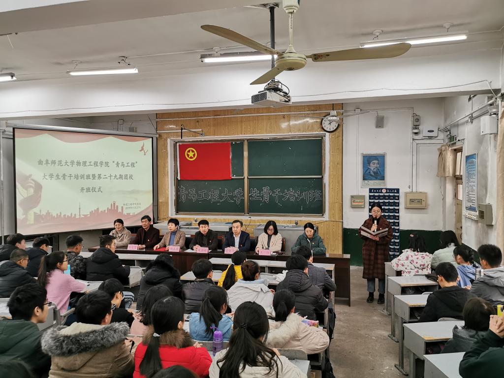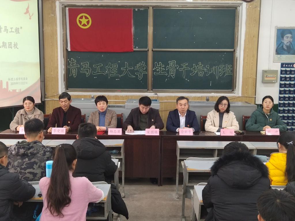 2019年“青马工程”大学生骨干培训班暨第二十九期团校开班仪式于学院教学楼三阶一教室举行。校团委书记宋国栋,网络信息中心主任徐新农,学院党委书记杨志英,辅导员李爱国、颜冲、李靖靖出席本次仪式,学生会主要学生干部及各班班委参加培训。仪式由学院团委书记王琼主持。
