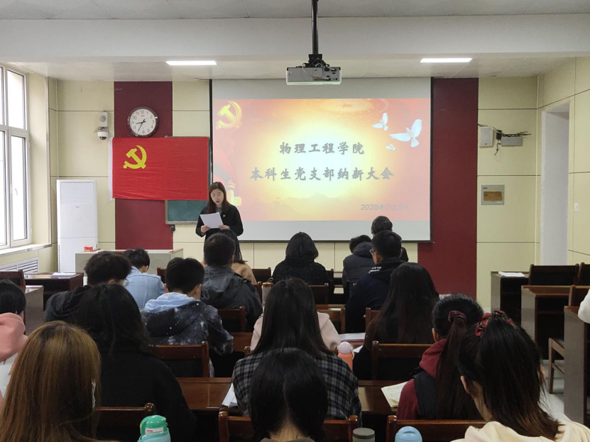 11月5日上午,学院本科生党支部于物理楼313会议室召开纳新大会。本科生党支部书记王琼,辅导员李爱国、颜冲、邱金芝、孔瑞、王衡出席会议,本科生党支部全体党员及发展对象参加。本次会议由组织委员颜冲主持。