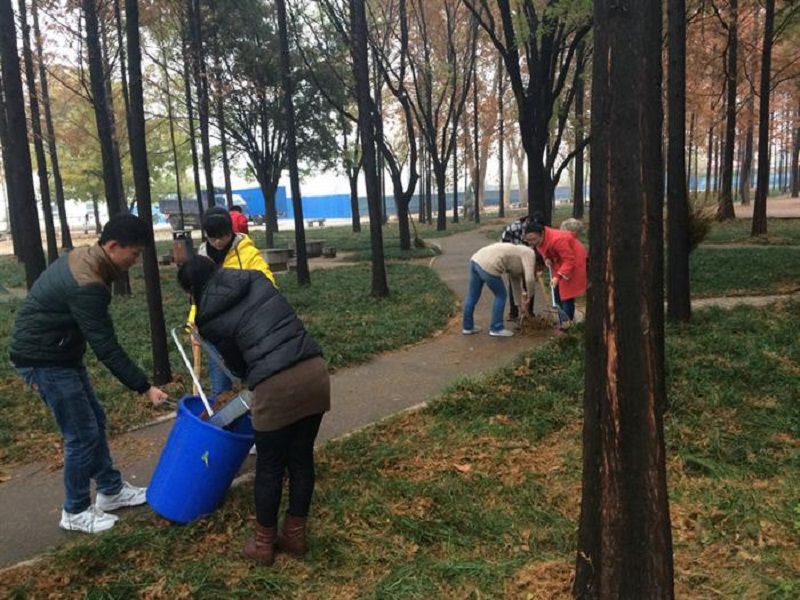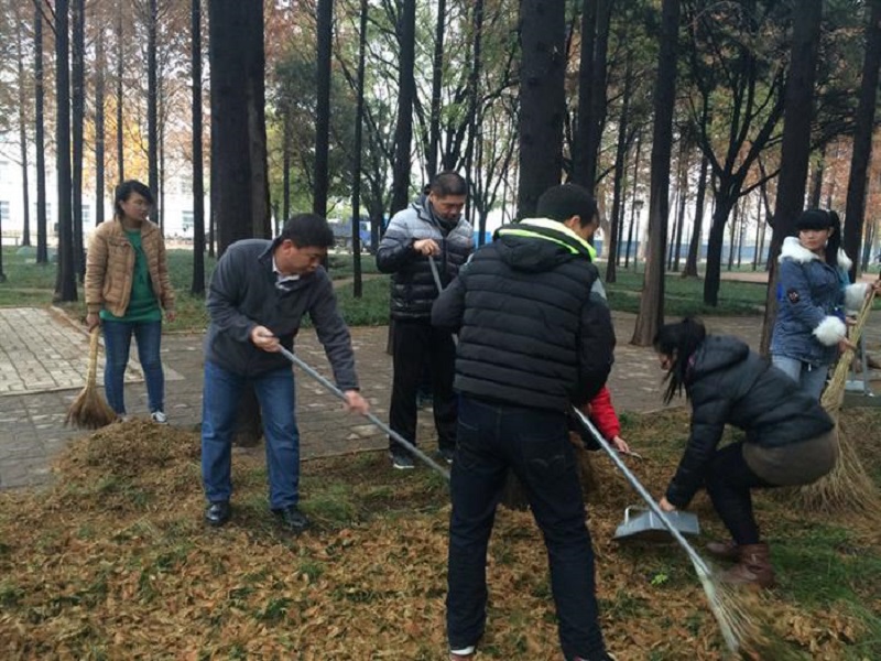 11月28日上午,NBA直播8 2014级辅导员孙金杰亲自带领2014级物理学一班、二班、三班的部分同学,在NBA直播8 卫生区清理落叶。