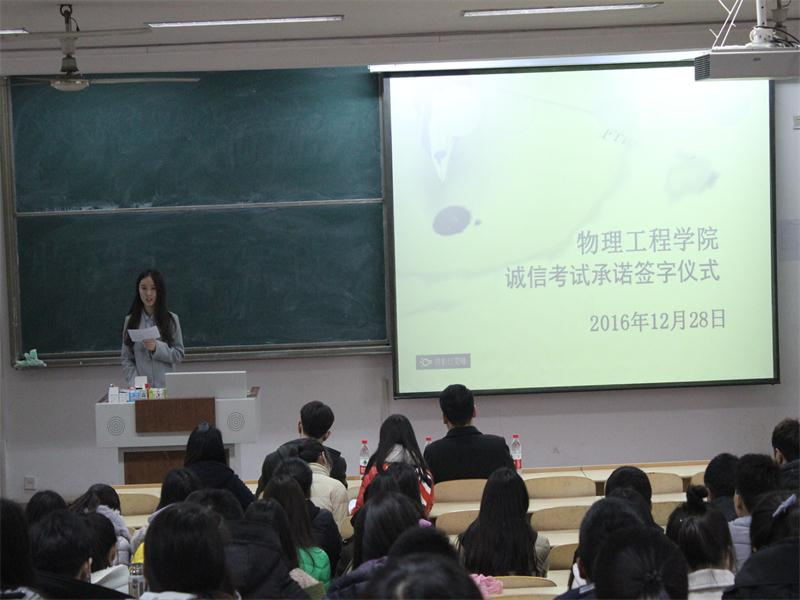 学生会办公室主办,学生会学习部承办的诚信考试承诺签字仪式在实验中心A202举行。辅导员厉成远出席仪式。同时与会的有2014,2015,2016级各班学生代表。