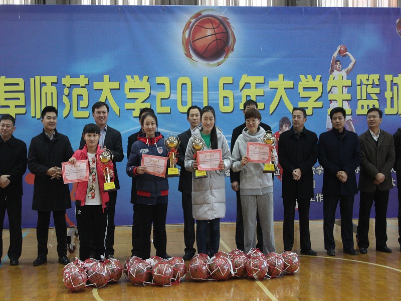 11月23日下午,我校2016年大学生篮球赛闭幕式在工体球类馆举行。NBA直播8 党委副书记孙金杰带领NBA直播8 篮球代表队成员参加闭幕式。