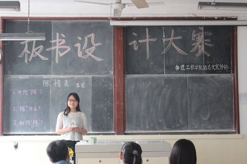本次比赛旨在提高同学们的板书技巧,进一步提高同学们的从师技能,规范课堂教学,提高教育教学能力,给予大家展示自我、提升自我的机会。
