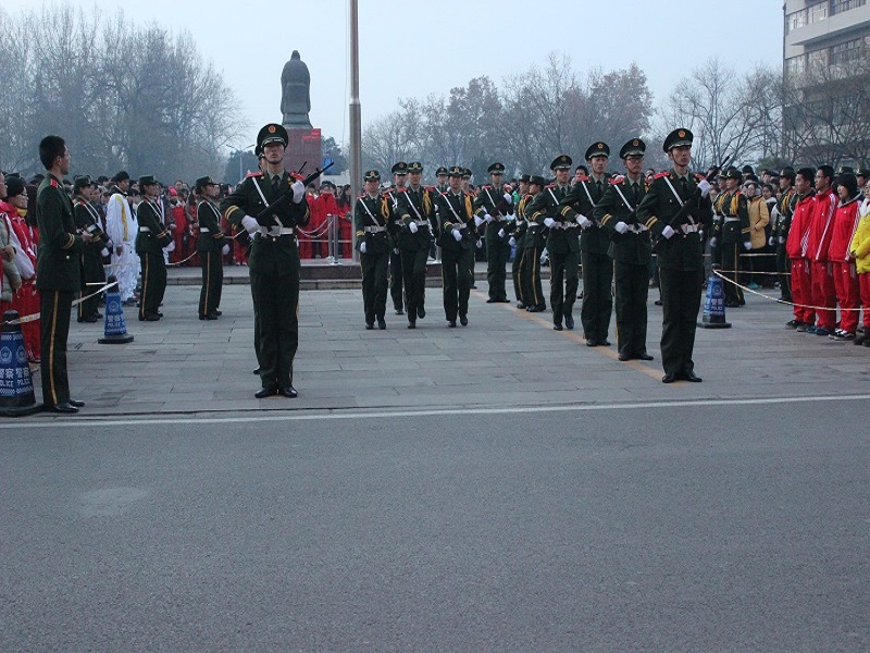 为了纪念一二·九这个被历史铭记的日子,NBA直播8 2014级全体同学统一着装于院楼前集合,在孙金杰老师的带领下前往孔子文化广场。升旗仪式正式开始,全体师生肃立,行注目礼。升旗礼毕,学生工作处钟振洪进行国旗下的讲话,要求同学们铭记历史,继往开来。