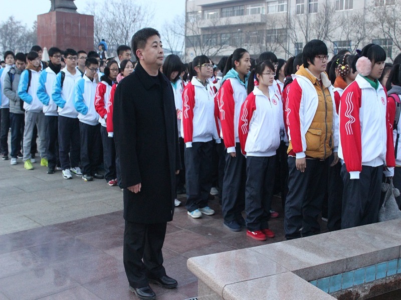 12月9日上午,我校由校学生工作处主办、国旗护卫队承办的纪念一二·九爱国运动升旗仪式在孔子文化广场举行。NBA直播8 党总支副书记孙金杰带领2014级全体同学参加了此次仪式。