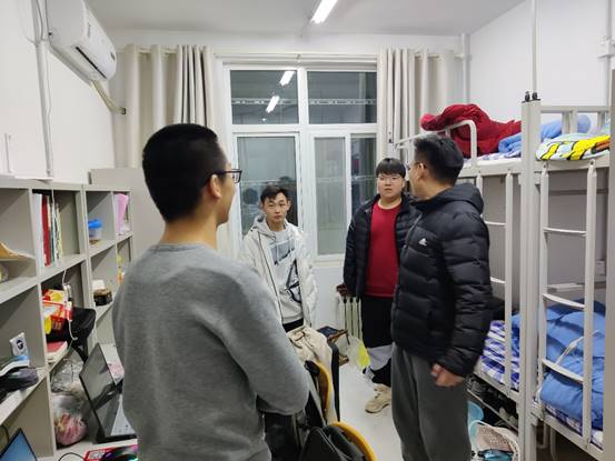 走访过程中,辅导员老师与同学们亲切交谈,对宿舍可能存在的安全隐患进行检查,指导学生安全用电,提高安全防范意识,养成良好生活习惯。同时,了解同学们返校后学习和生活状态,叮嘱大家注重疫情防控常态化,做好个人防护工作,以实际行动配合学校疫情防控。最后老师们鼓励同学们调整好状态,以饱满的热情投入到新学期的学习生活之中。