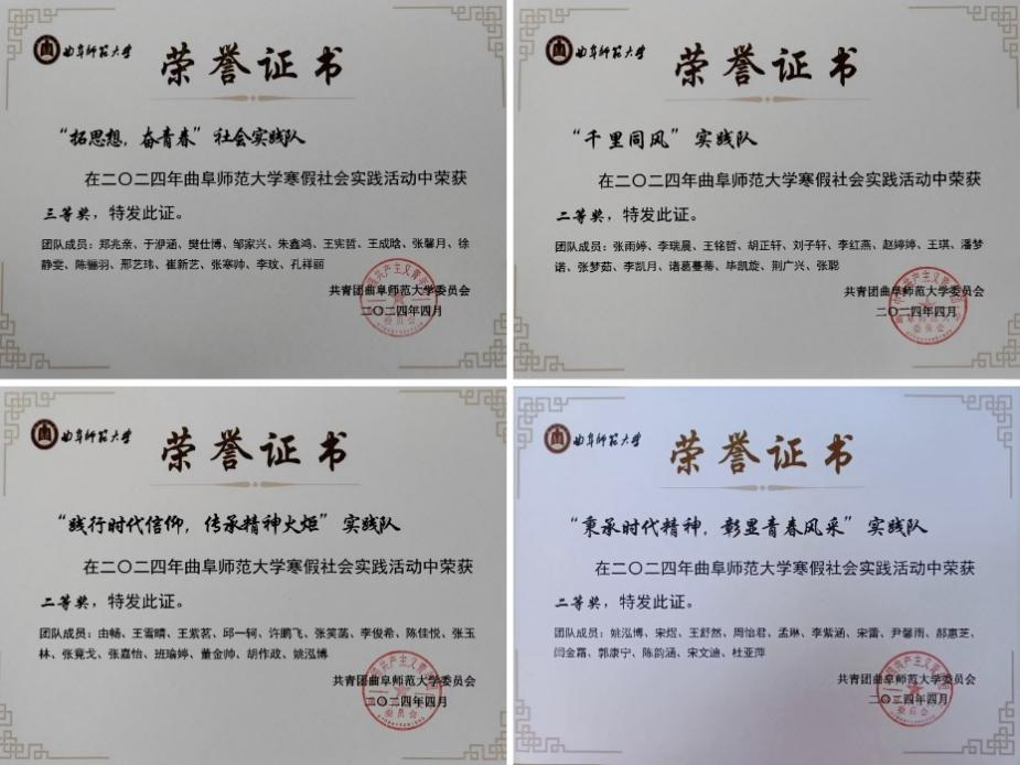 讯(通讯员:王雪晴 薛宇涵)为丰富学生的寒假生活,提升学生实践能力与团队协作意识,学院积极组织学生参加曲阜师范大学2024年寒假社会实践活动,并在活动中荣获佳绩。