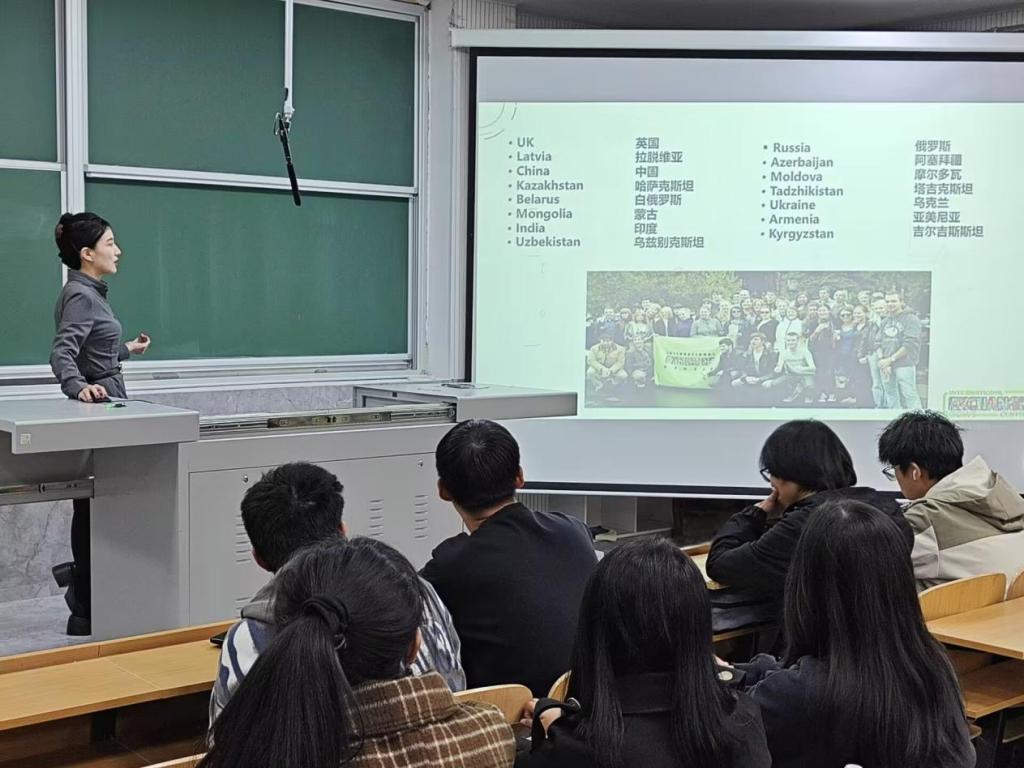 会上,韩瑾凤围绕学生对赴美实习的困难与疑惑,就配岗系统、安全保障、实习收入等多方面对项目进行讲解,并结合自身经验指出项目对于学生体验多样文化,增进国际友谊的作用,鼓励大家积极参与,在拓宽国际视野的同时促进文化交流、锻炼学习能力。