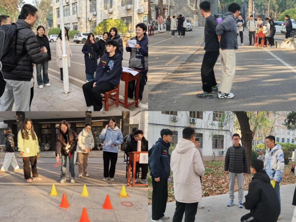 本次活动分为趣味运动会、vlog设计比赛、手抄报设计比赛三个环节。趣味运动会于学院楼前举办,设有“举‘七’不定”“你划我猜”“套圈”“背靠背夹气球”四个项目。参赛成员们默契配合,现场氛围紧张而又温馨。在vlog设计比和手抄报设计比赛中,宿舍成员们集思广益,创作出了各具特色的作品,记录了大学生活中的美好瞬间。