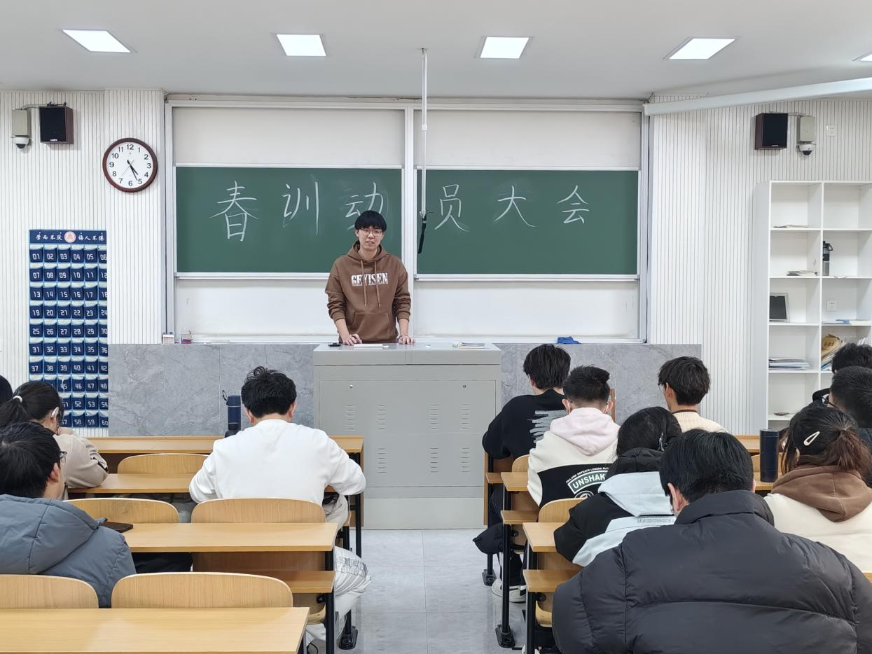 讯(通讯员:李汝伟 刘嘉晔 摄影:赵政飞)为鼓励学生增强身体素质,积极备战学校2025年春季运动会,2月20日下午,学院于物理楼二阶二教室召开春训动员大会。学生会体育部部长郑德益主持会议,全体参训成员参加会议。