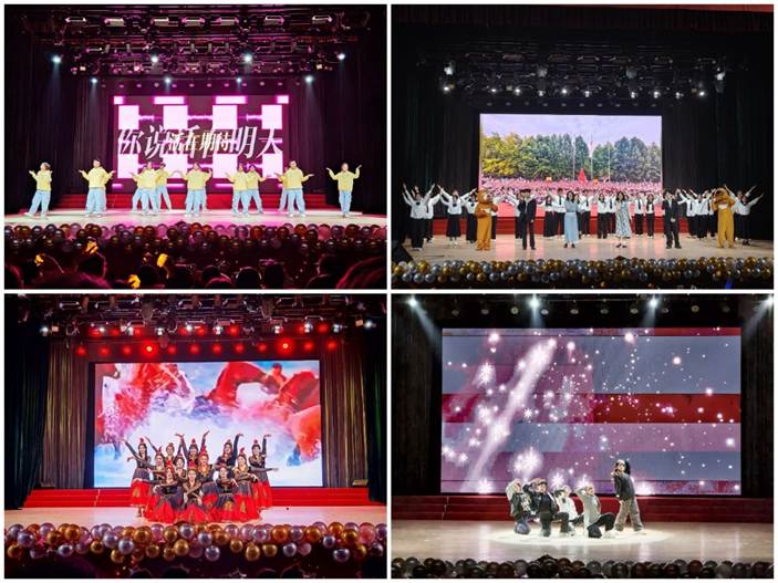 晚会节目构思精巧,涵盖歌曲、舞蹈、相声、器乐演奏等多种形式。开场舞《青春首日,快乐出发》青春洋溢,拉开晚会的帷幕,点燃全场气氛。各类舞蹈轮番登场,或节奏强劲、动感十足,或衣袂飘飘、优雅曼妙;歌曲旋律动人,既有深情对唱,亦有经典重现;器乐合奏《灵岳雅音》丝竹和鸣,余韵悠长。最后,晚会在热情欢快的大合唱《我乘着风飞过来》中圆满落幕。