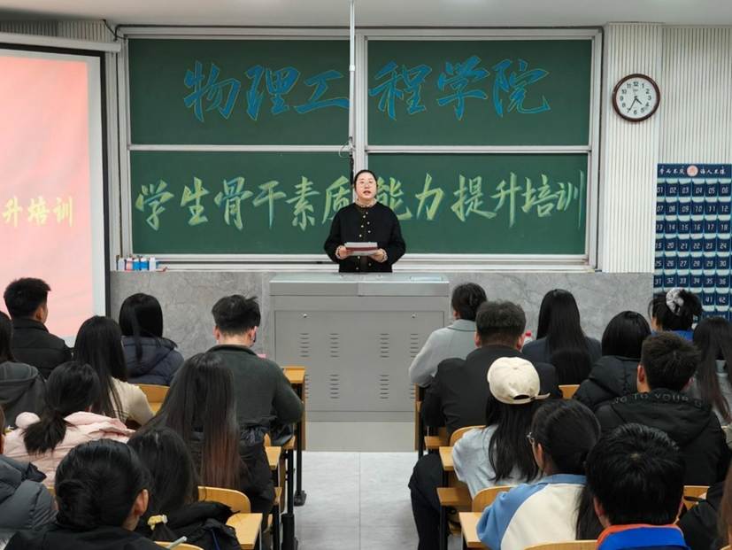 讯(通讯员:李志浩 刘嘉晔 摄影:李世航)为提升学院学生干部的责任意识与综合素养,推动学生工作高质量发展,11月26日下午,学院于物理楼三阶一召开学生骨干素质能力提升培训会议。学院党委副书记王琼、团委书记颜冲、团委副书记朱佳文、辅导员孔瑞、邱金芝、张杰、王铭晨出席会议,全体学生干部参加会议。会议由颜冲主持。