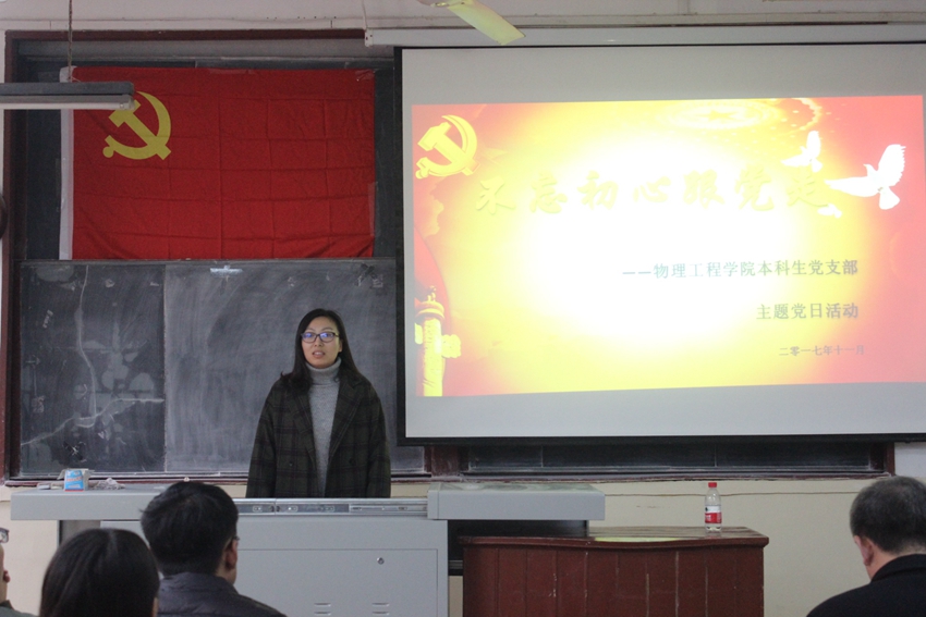 本科生党支部举办以“不忘初心跟党走”为主题的党日党课活动,本次党课由党委副书记孙金杰主讲,学生党支部书记王琼主持,学生支部全体党员、发展对象和部分入党积极分子参加了学习活动。