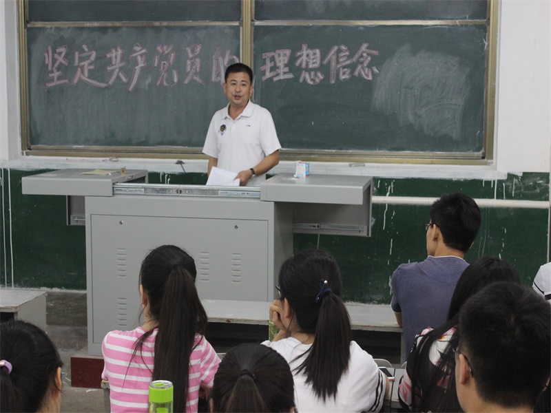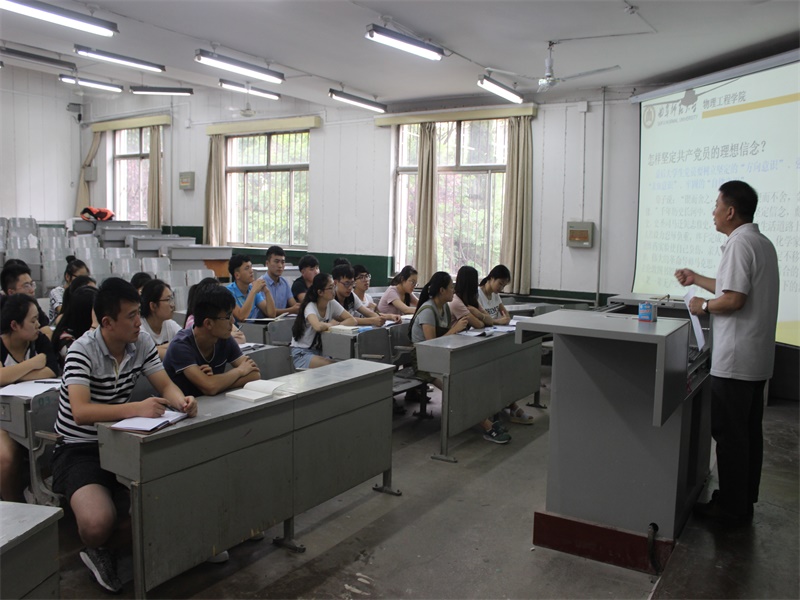 76日下午,学生党支部的主题为坚定信念,对党忠诚的党课在院楼二阶一教室举行,党委副书记孙金杰为全体本科生党员讲解共产党员的理想信念。