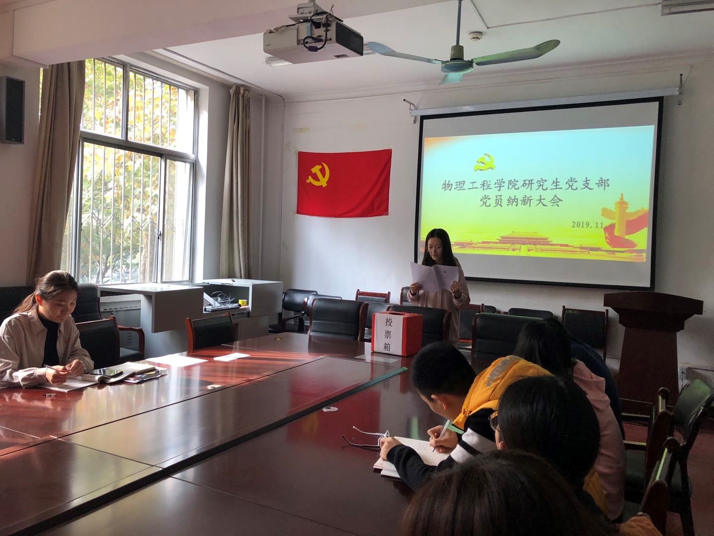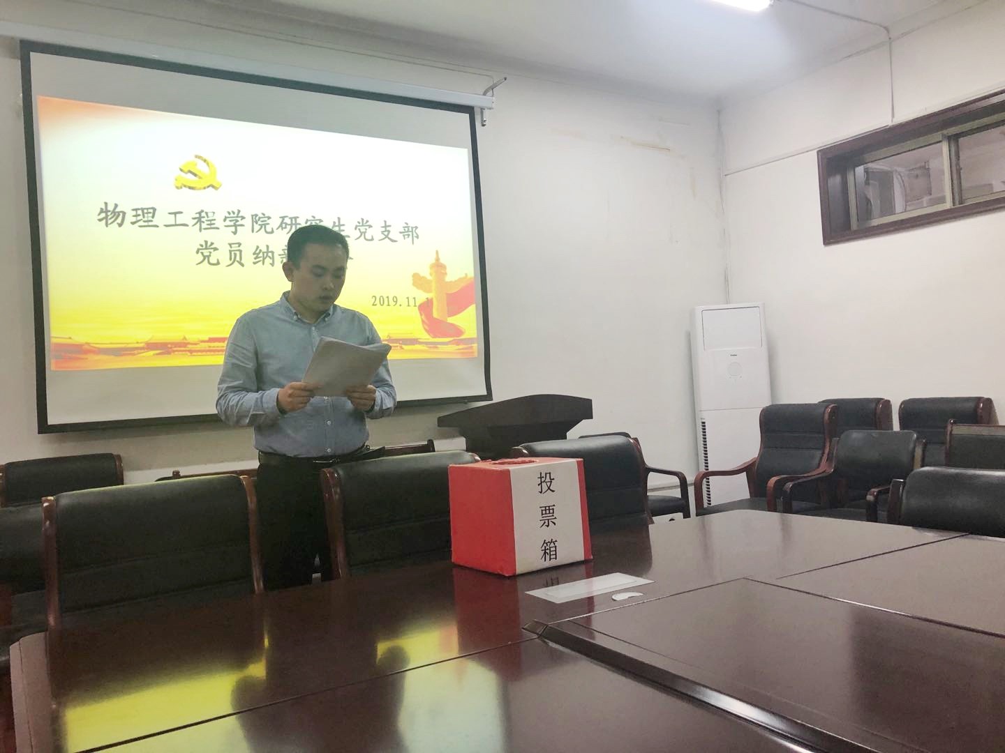 研究生党支部分别于11月1日和11月6日在物理楼225会议室召开党员纳新大会,分别讨论并接收田聪同志和贾召赛同志为中共预备党员。研究生党支部全体党员参加,会议由支部书记孙海瑞同志主持。