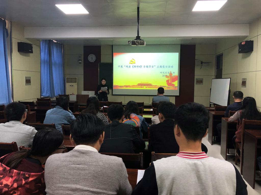 研究生党支部在物理楼313教室开展“观看《榜样4》专题节目”主题党日活动,研究生党支部党员参加,会议由陈婷同志主持。