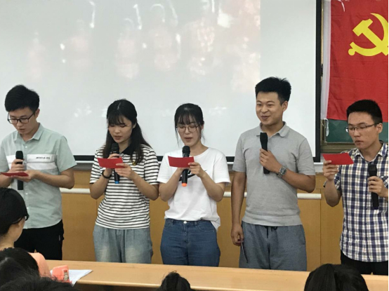 活动伊始,全体与会党员合唱《国际歌》。随后,按照中国共产党成立以后发展的时间顺序,同学们逐一唱响反映中国共产党在不同历史时期的革命歌曲。从表现共产党不畏艰险、百折不挠的《人民军队忠于党》,到歌调轻快欢乐的《南泥湾》;从充满希望的《东方红》,到歌颂社会主义建设欣欣向荣的《社会主义好》;从体现新中国朝气蓬勃的《团结就是力量》,到赞颂共产党带领人民走向富强的《走进新时代》。有大合唱也有小合唱,有男女声二重唱也有引吭高歌的独唱,一首首革命歌曲,唱出了大家对党和国家的深厚情感。最后,孙书记鼓励大家以此次活动为契机,进一步增强党员意识和党性意识,永葆共产党员政治本色。