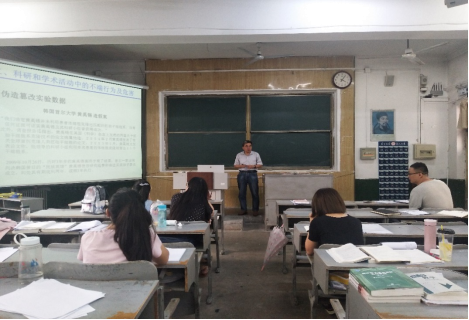 为庆祝中国共产党成立97周年,深入学习贯彻习近平新时代中国特色社会主义思想和党的十九大精神,持续推进“两学一做”学习教育常态化、制度化,切实把“三会一课制度”做实做细,7月4日下午,研究生党支部邀请王海龙院长为全体党员同志讲授专题党课,活动由支部书记孙海瑞同志主持。