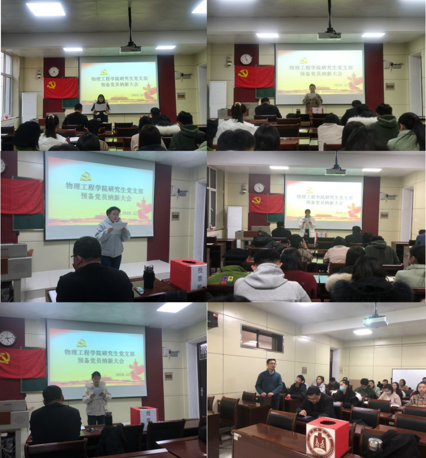 研究生党支部在物理楼313会议室召开预备党员纳新大会。研究生党支部全体党员参加,学院党委委员、教工第一党支部书记张英杰列席会议,会议由支部书记孙海瑞主持。
