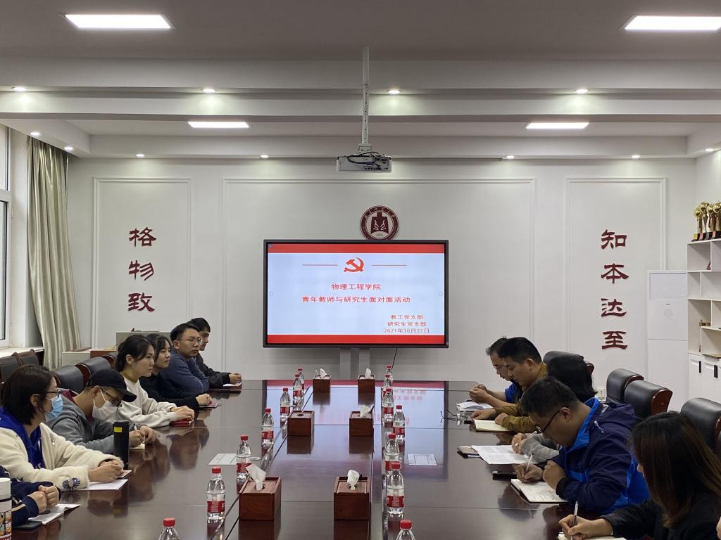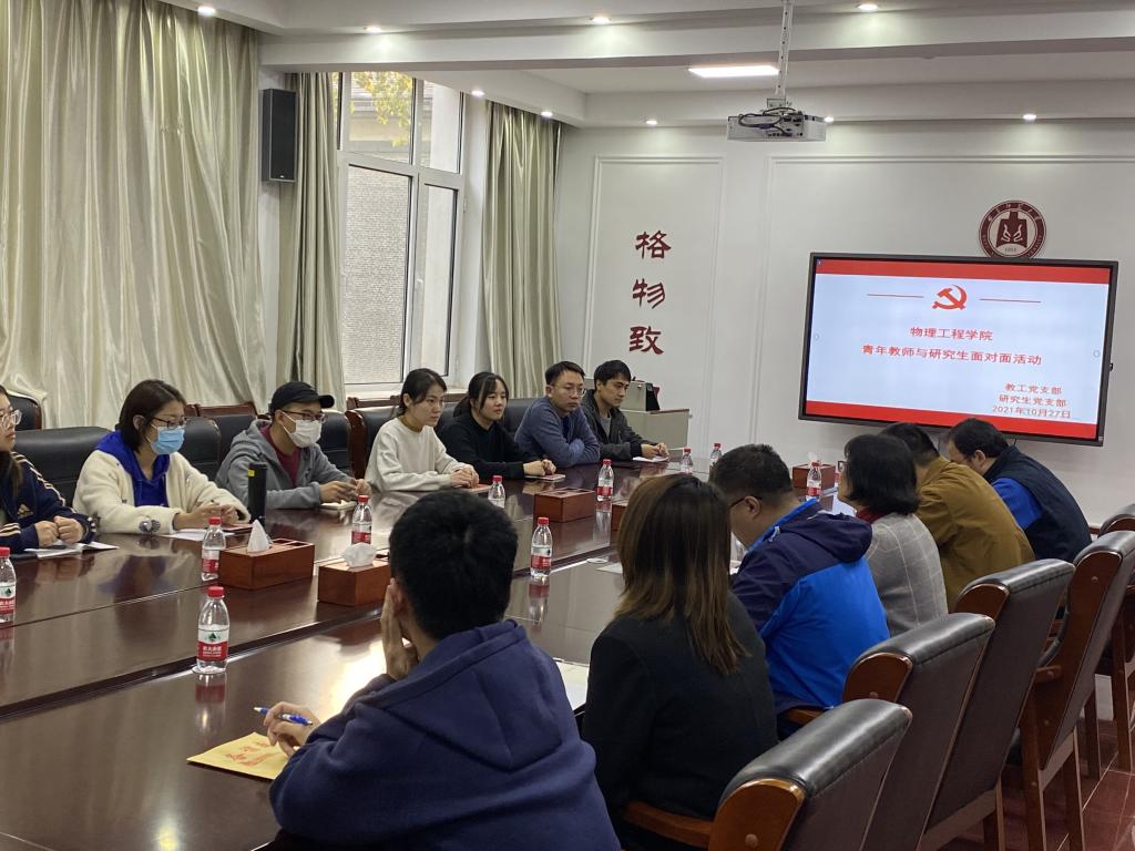 教工党支部与研究生党支部在物理楼225党员活动室开展“青年教师与研究生面对面”活动。此次活动由教工党支部书记郑萌萌同志、研究生党支部书记张守宝同志共同主持,会议邀请了吴闻迪、杨滕州、马利男等党员教师与研究生开展面对面交流。