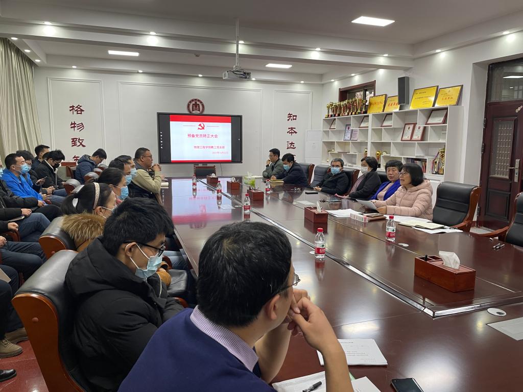 教工党支部在物理楼225党员活动室召开预备党员转正大会。学院党委书记杨志英,副院长张英杰、刘广强,教工党支部全体党员参加,会议由教工党支部书记郑萌萌同志主持。