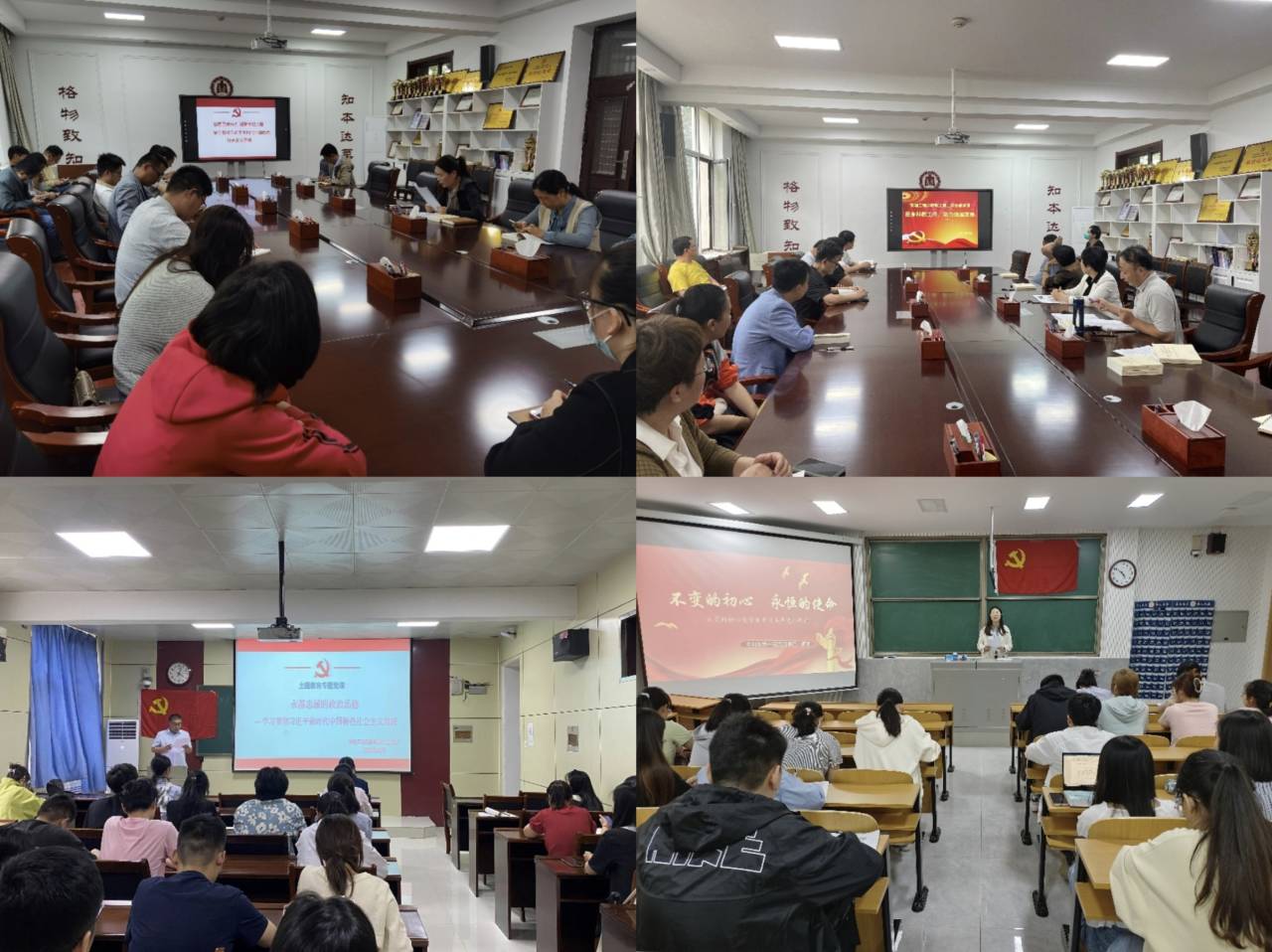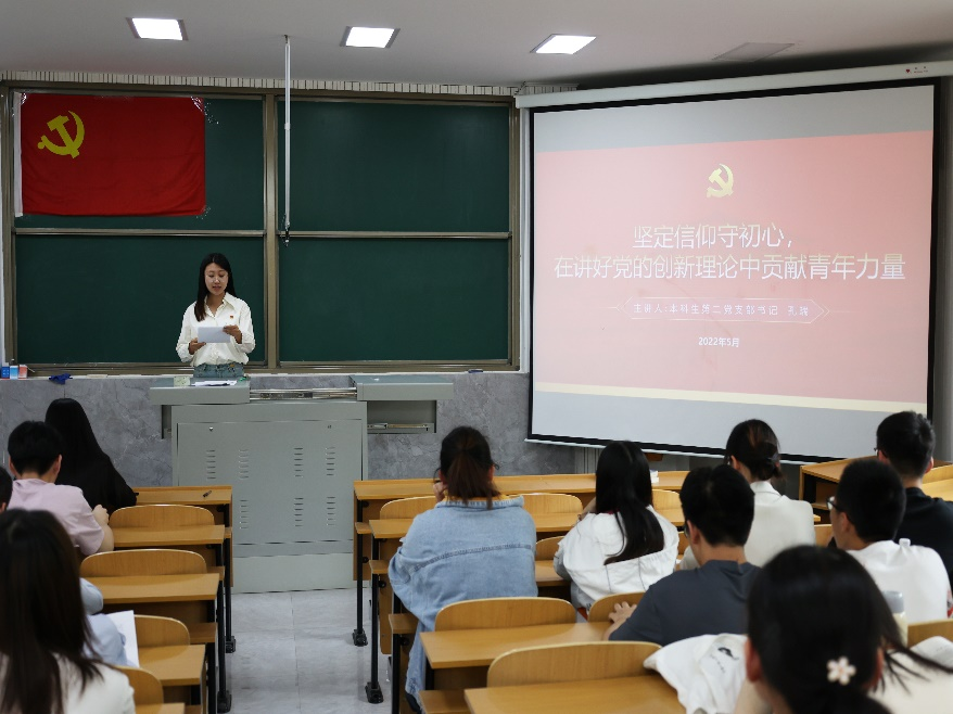 教工第一党支部书记李晶、教工第二党支部书记曹洪忠、研究生党支部书记张守宝、本科生第一党支部书记颜冲、本科生第二党支部书记孔瑞,分别在所在党支部讲了“感悟思想伟力 凝聚奋进力量””投身科教工作,助力强国发展””永葆忠诚的政治品格””不变的初心,永恒的使命””坚定信仰守初心,在讲好党的创新理论中贡献青春力量”专题党课。