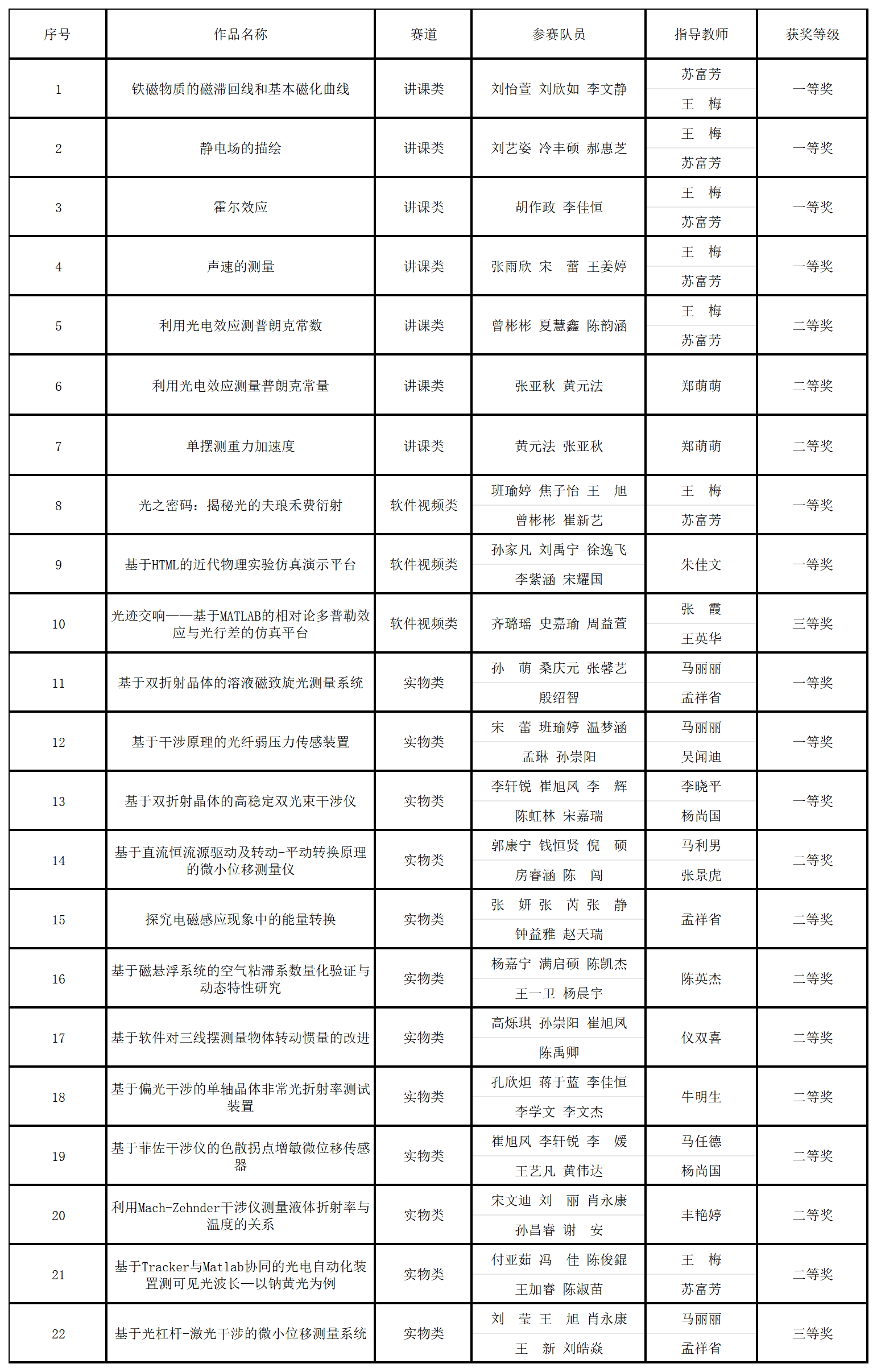 积极组织学生参加了所有3个赛道(“讲课类”、“软件视频类”和“实物类”)的比赛,凭借扎实的物理实验功底、创新的实验设计和出色的现场表现,共取得一等奖9项、二等奖11项、三等奖2项的优异成绩,充分展现了学院在物理实验教学与创新实践方面的实力。