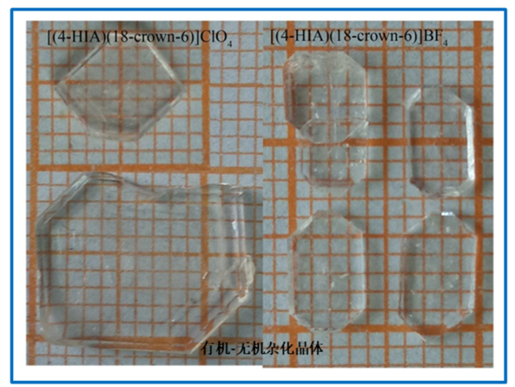 团队采用熔体提拉法生长的无机材料Nd:Ca2Ga2SiO7和Ba2TiSi2O8,研究发现Nd:Ca2Ga2SiO7是一种新型的压电和激光晶体;Ba2TiSi2O8是性能优良的高温压电和受激拉曼散射活性晶体。另外,研究团队采用水溶液法合成了冠醚体系和钙钛矿结构的有机-无机杂化晶体,目前最新的实验结果表明: [(parachloroanilinum)(18-crown-6)][ClO4]是新型的压电和光致发光材料。相关工作发表在Applied Physics Express, 13 (2020) 035503;Crystals 9 (2019) 207;Journal of Crystal Growth, 487 (2018) 17-22;Journal of Alloys and Compounds, 727 (2017) 8-13。NBA直播8