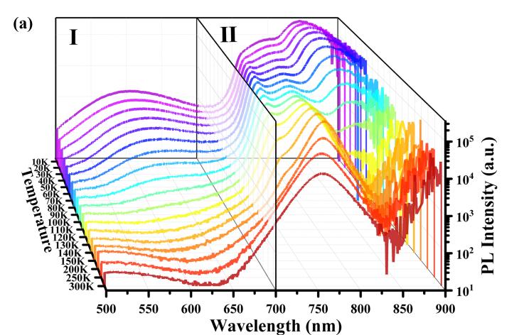 1 Bi掺杂甲胺铅碘晶体照片(上)及施主光谱指纹特征演化光谱(下,10~300 K)