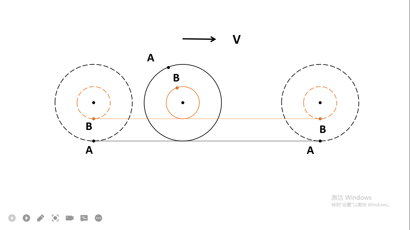 亚里士多德车轮悖论:如图所示,大轮和小轮的半径是不同的,车轮滚动一周后,A点和B点的位移应该为大小轮各自周长,是不同的。但,滚动一周后,确实产生了相同的水平位移距离。伽利略提出的多边形解释,从小多边形边缘的印迹是虚线,得出B点轨迹由大量间隙,较复杂。多数学者从A和B轨迹的摆线方程入手进行解释,但其过程较为冗长。本论文从运动的分解角度, 将B点的运动分解为匀速直线运动和匀速圆周运动,得出大轮做无滑滚动时,小轮做滚动加滑动的合运动,即有滑滚动。