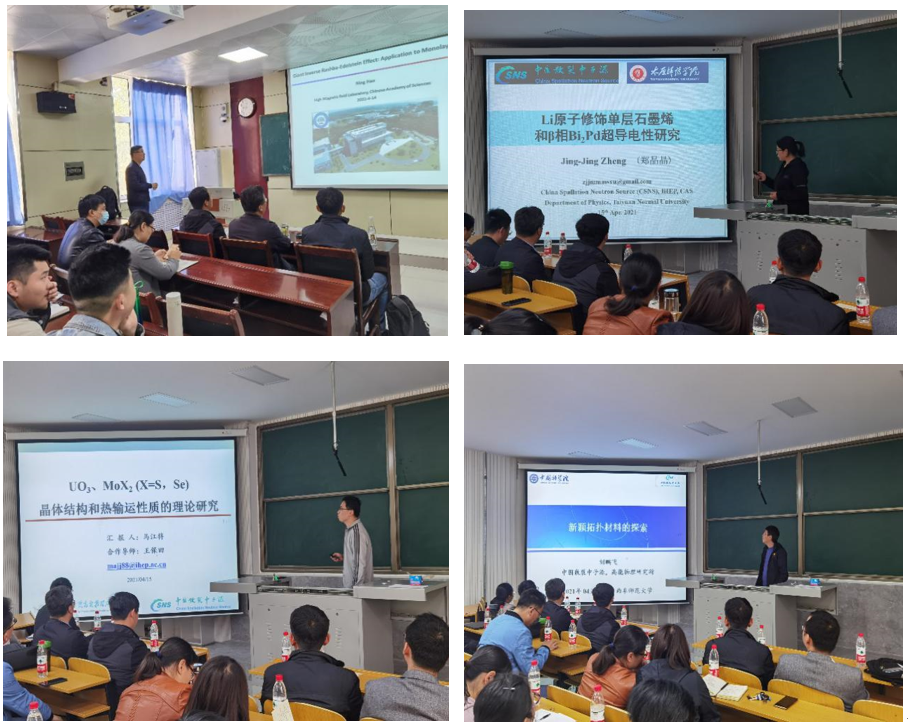 2021年4月14-17日,应张平教授邀请,中科院合肥物质科学研究院郝宁研究员、北京理工大学郑法伟教授和中科院高能物理研究所-中国散裂中子源王保田研究员及其团队成员来我校,作了系列学术报告,并与NBA直播8