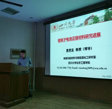郭孝东教授作了“锂离子电池正极材料研究进展”学术报告,主要从产业化的角度和大家分享了锂离子电池及相关关键材料的研究进展,对锂离子电池以及锂离子电池正极材料的研发重点领域进行了阐述。