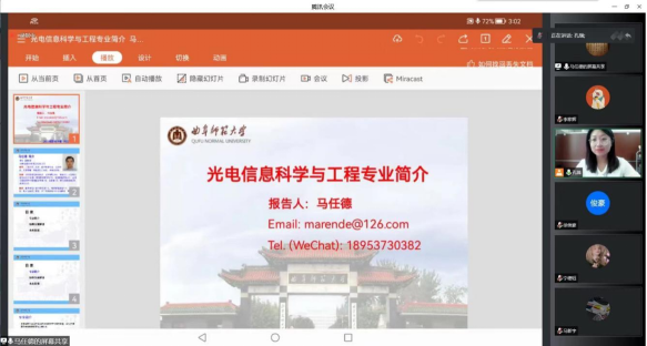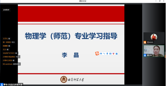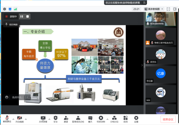 9月13日下午,三位系主任李晶、马任德、张倬就物理学、光电信息科学与工程、新能源材料与器件三个专业分专场与新生进行线上专业介绍与交流,针对专业特色、师资力量、课程设置、培养方案、和专业发展等方面,帮助同学们对即将学习的专业有进一步的了解,增强对专业学习的信心和动力。