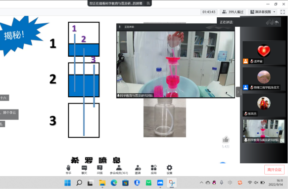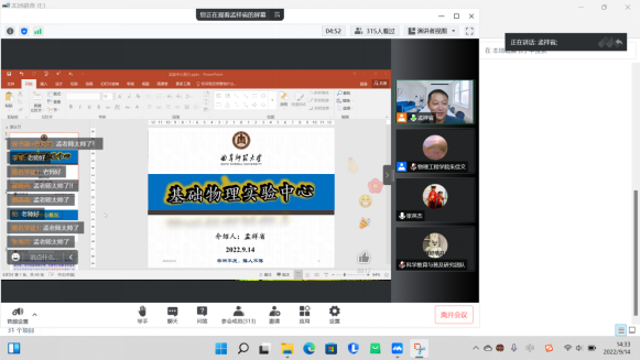 9月14日下午,基础物理实验中心主任孟祥省通过“大学的物理实验是这样的!“”生活处处有物理!“两个主题展开报告,通过线上方式带同学们”云游“实验室、进行物理实验演示,为新生们带来了一场生动的科普活动,让同学们了解物理专业基本实验知识的同时又深刻领略物理现象的魅力与神奇。