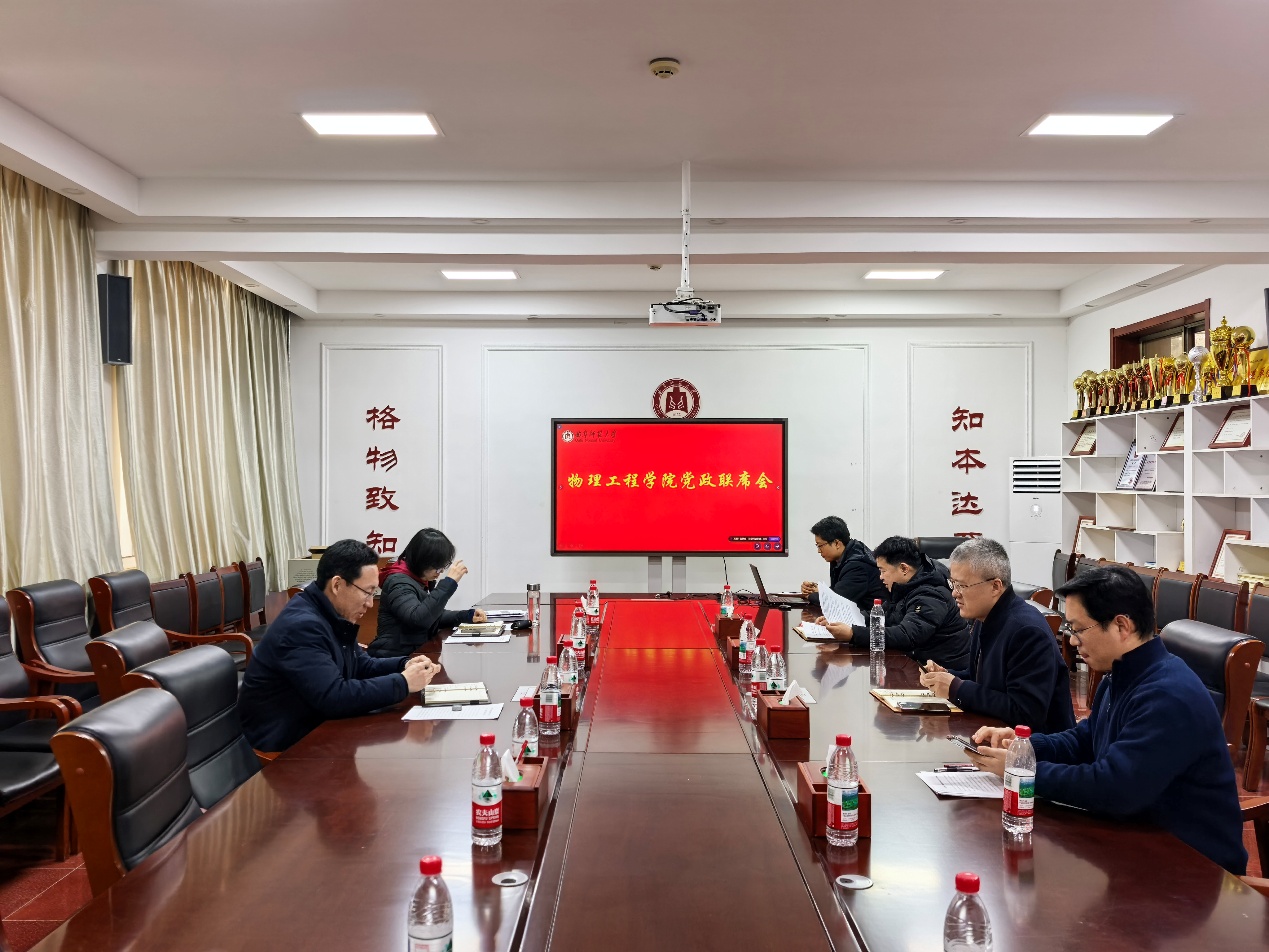 2025年12月31日,NBA直播8在线直播 在物理楼225会议室召开党政联席会议,学院领导班子全体成员参加了会议。会议审议了NBA直播8在线直播 2025级转专业学生面试方案和学院转专业面试工作领导小组名单,并对下一步工作进行了部署安排。