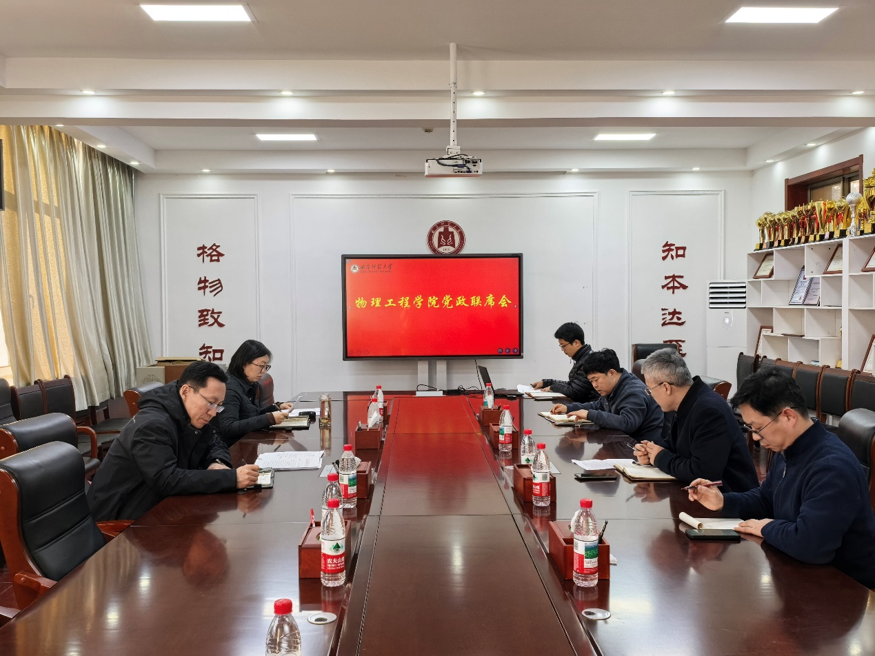 在物理楼225会议室召开党政联席会议,学院领导班子全体成员参加了会议。