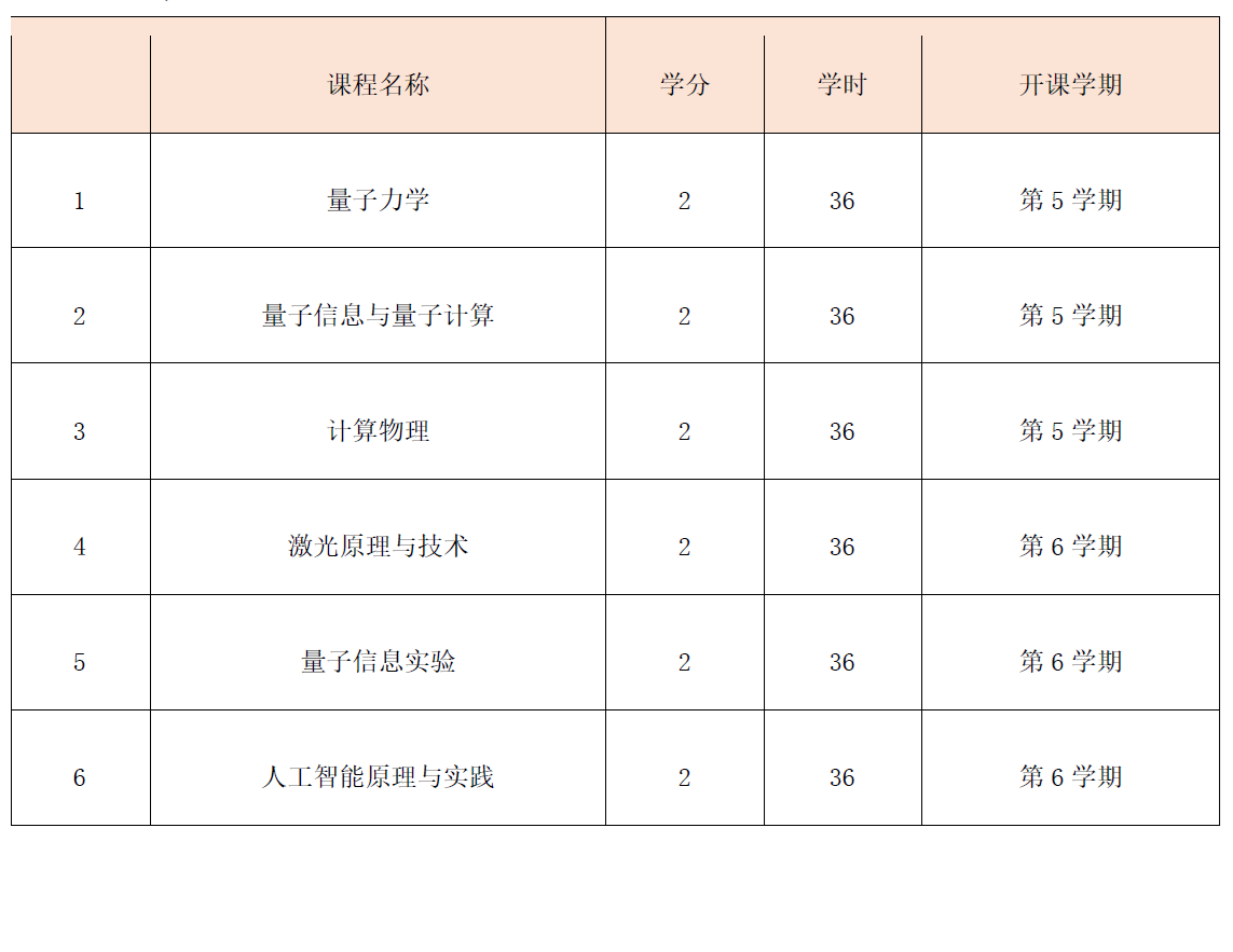 本微专业精准对接量子计算、量子通信、量子精密测量等未来产业的技术+管理复合型人才需求,遵循小学分、精课程、高聚焦、跨学科的建设原则,构建跨学科核心课程群,为学生提供系统学习量子科技核心知识的优质平台,助力学生构建面向未来的核心竞争力。